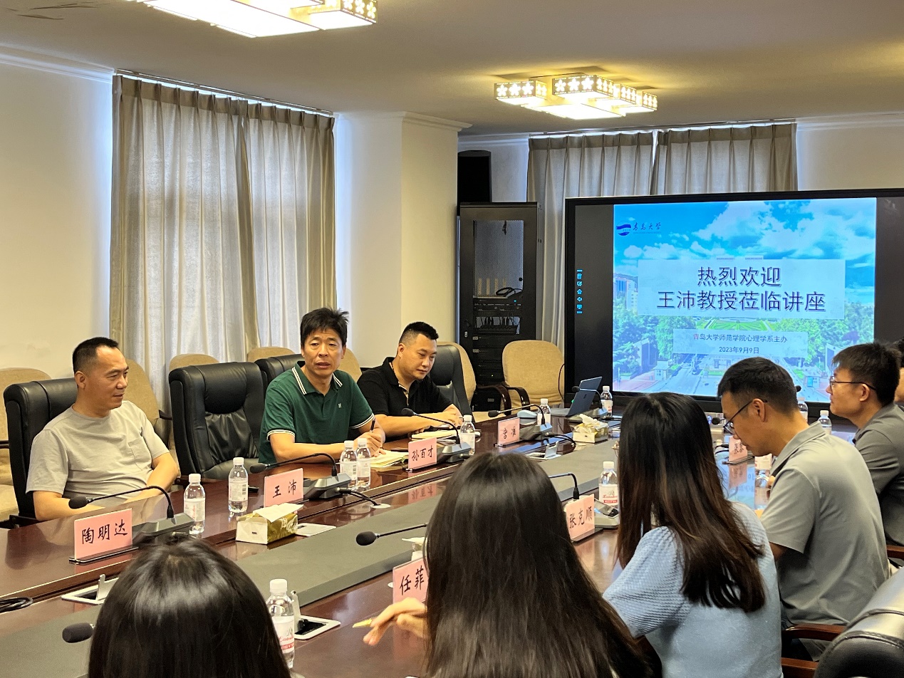 9月9日上午,工口 在德润楼301会议室举办师范学院菁师讲坛第26讲。邀请华东师范大学紫江学者特聘教授、博士生导师王沛教授做“社会治理视野下和谐医患关系的实践进路”专题讲座。讲座由院长孙百才教授主持,心理学系部分教师、研究生、本科生共同聆听了本次报告。