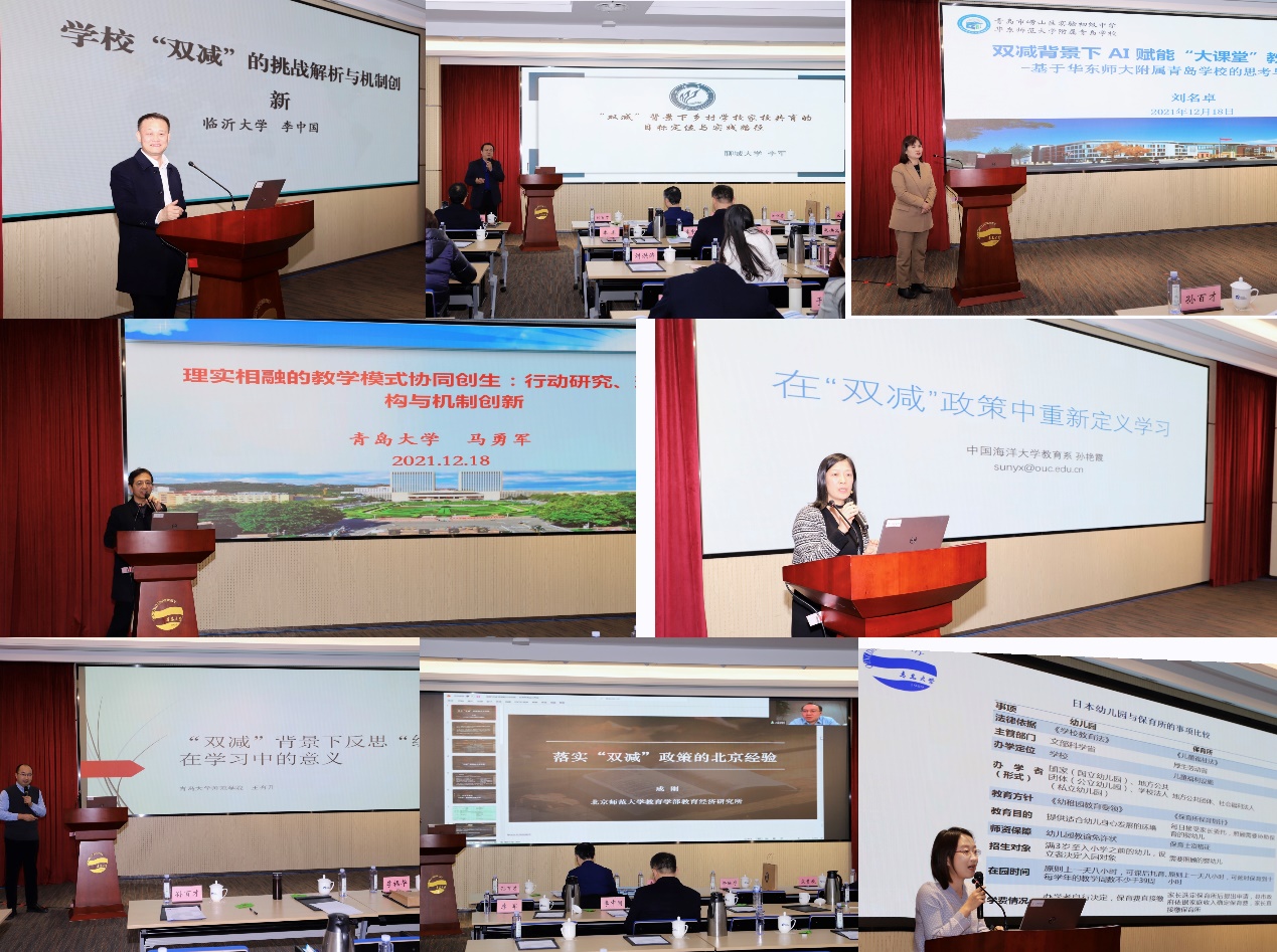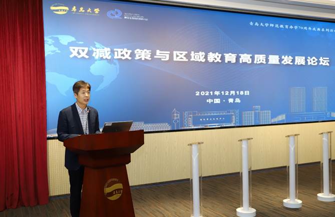 韩东副局长就青岛市“双减”政策在课堂教学、课后服务、校内减负“规范+示范”工作、家长协作和教师关爱方面的工作实施与落实情况进行介绍,并希望本次论坛能够为青岛市“双减”工作建言献策。