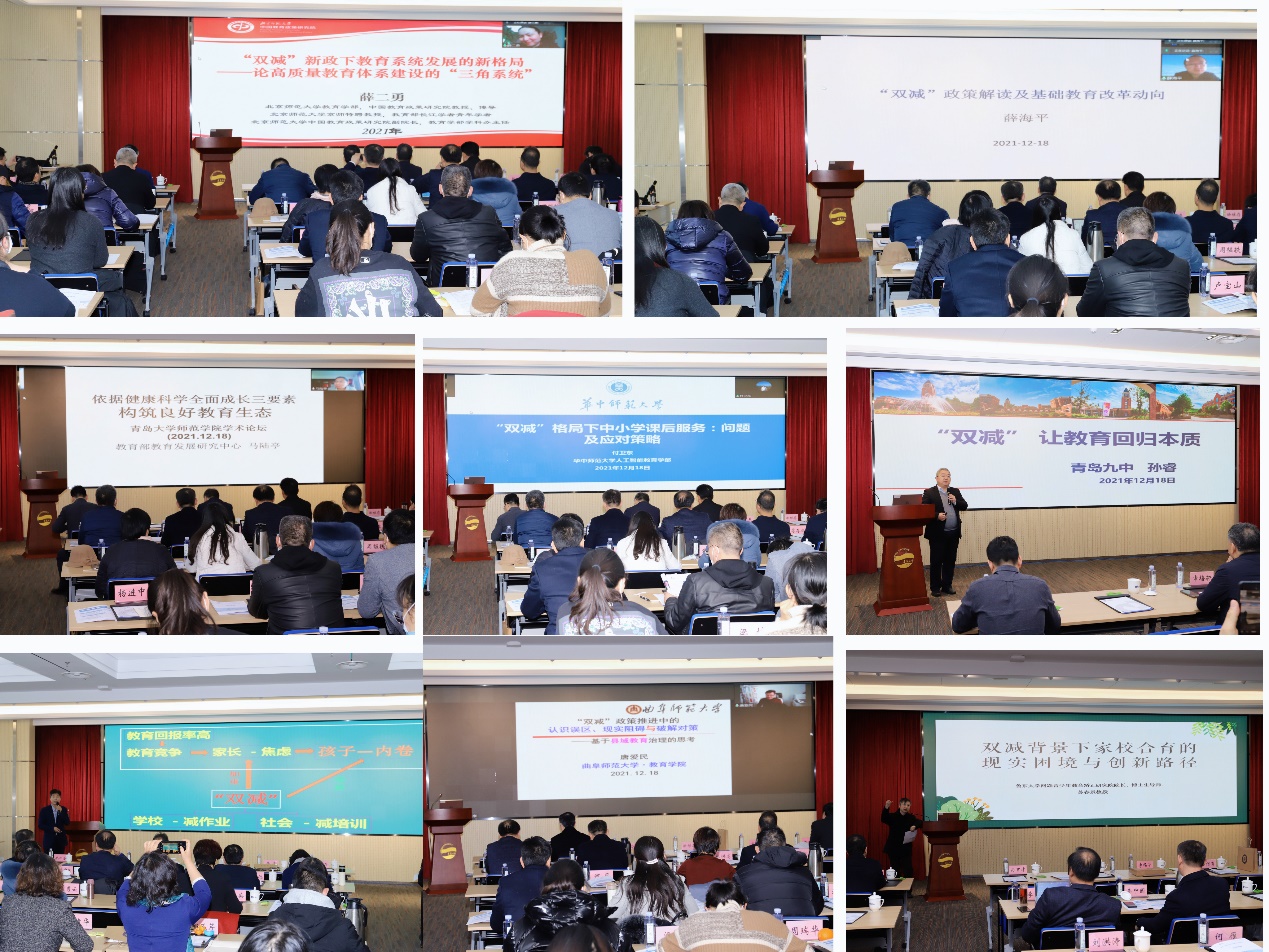 12月18日上午,由工口 和青岛市教育局主办、工口 师范学院和青岛市教育发展研究会承办的“双减”政策与区域教育高质量发展学术论坛在工口 会议中心顺利召开。来自教育部、北京大学、北京师范大学、山东师范大学、华中师范大学、首都师范大学等科研院所、高校的专家学者以及青岛市中小学的校长等百余人通过线上、线下方式出席会议,以“双减”为主题,畅谈区域高质量教育发展。