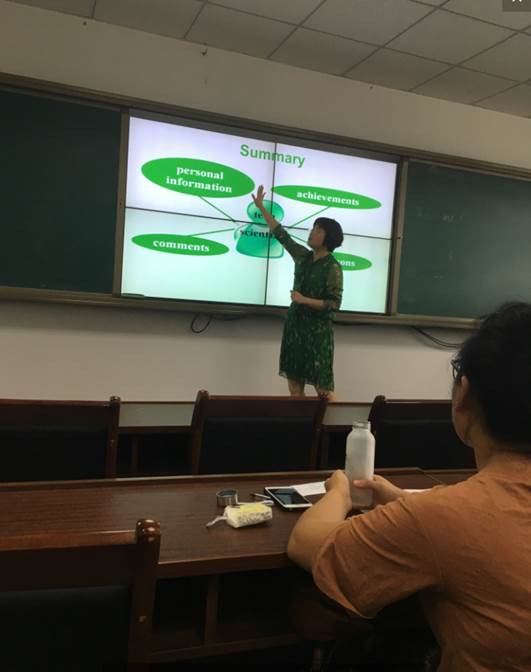 教学法中的TBL——Task-based language teaching method通过杨老师的解读,更是使得大家认识到培养学生critical thinking的重要性。今天下午刚刚结束的《谈谈英语说课》是来自65中的张艳老师给大家奉上的一份精心准备的礼物——说课,这一教学改革中涌现出来的新生事物是进行教学研究、教学交流和教学探讨的新方式,让大家深刻的感受到说课的最终目的就是展示个人综合素质、整体设计思路、课堂教学精华、有效教学方法、教师教学的个性魅力。五天天的集中培训饕餮盛宴,让我们大快朵颐,现在想来仍觉津津有味,意犹未尽。