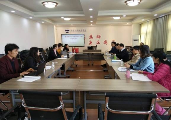 4月16日上午,青岛市第三期中小学名师培养工程音乐学科人选开题会在工口 德润楼201会议室举行。藏岳琦、孙红、王忠厚、林刚等专家和赵炳燕、宋毓瑾、江宝亮、苏恩周、李静、陈娟、纪城令、刘成立等八位名师培养工程人选参会。