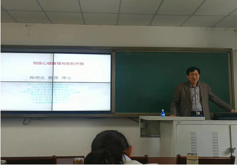 陶明达教授围绕“班级心理管理与危机干预”这一主题,通过个案研究、时事解析等形式,归纳总结了班级心理管理工作中可能出现的危机事件及其应对策略。陶教授重点针对当事人遭遇危机事件后可能产生的不同应激反应进行了归类诊断,并提出了合理有效的危机干预方法。陶教授一再强调班主任在班级管理工作和危机事件处理工作中的重要作用,热切希望更多的班级管理者能够拥有更科学的心理危机干预技术,能够将校园危机事件的影响降到最低。