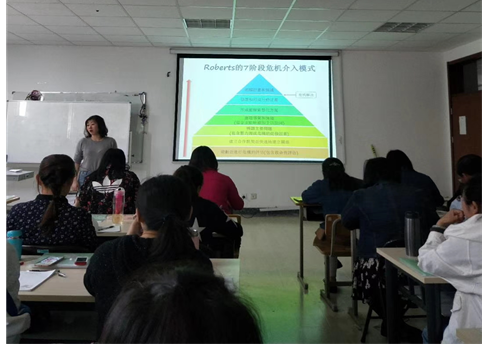 黄艳老师以其深厚的理论研究和实践基础,将危机事件的界定、预防、处理原则等内容进行了明晰的释解,并重点对Robert七级危机干预阶段进行了透彻的分析与定向指导。为了让大家对危机事件进行科学有效的干预,黄老师首先带领大家体验了绘画技术的操作流程——通过学员们分享体验和畅谈感受,让大家对危机技术有了感性的认识;接着,黄老师针对绘画步骤做了深度的剖析,让学员对绘画危机干预技术有了理性的掌握;最后,大家分组进行实践操作,使每个人都能够熟练运用绘画危机干预技术。